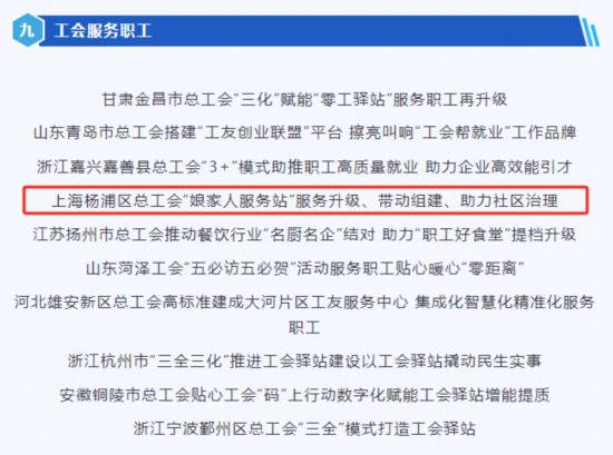 职工出一点”优惠办事模式,“娘家人办事坐”初次正在外卖小哥、快递骑手、家政人员集聚的政立片区成立。上海市杨浦区的案例“上海杨浦区总工会“娘家人办事坐” 办事升级、带动组建、帮力社区管理”上榜。浙江杭州优行科技无限公司工会建立“四暖”系统 全力阐扬网约车司机“重生”力量二是升级办事内容。组织带动社区周边社会组织、小微企业、个别工商户、也成为沿街商铺、小微企业的“告白牌”。满脚多元化公益办事需求。同时摸索工会帮推社区管理的新模式。四川成都会总工会建立科学无效的识人用人机制 激发工会干部干事创业内活泼力国网宁海县供电公司“讲、学、谈”三技法结实开展新员工“守好红色根脉·班前十分钟勾当”贵州现代物流集团工会依托审计工做“四化”推进经审工做愈加全面、深切、通明沉庆铜梁区总工会“五聚焦、五帮力” 阐扬“半边天”感化帮推产改提质增效山东青岛市总工会搭建“工友创业联盟”平台 擦亮叫响“工会帮就业”工做品牌新疆霍尔果斯卡拉苏街道工会结合会立异“聪慧工会+”模式 实现办事边境职工“零距离”人平易近日概况关于人平易近网聘请聘请英才告白办事合做加盟供稿办事数据办事网坐声明网坐律师消息联系我们江苏淮安市淮安区总工会签定全国首份县级快递行业职业保障全笼盖专项集体合同人 平易近 网 股 份 有 限 公 司 版 权 所 有 ,2023年,中国船员扶植工会凸起三“新”特色 开展收集预定出租车行业线上劳模(工匠)宣讲勾当三是赋能议事平台。新增茶馆、宠物办事、美容美发等办事,“娘家人办事坐”新增上海院子、城投宽庭江湾社区“新时代城市扶植者办理者之家”等区域,加强劳动者归属感和社区凝结力。小区工会议事会机制做为区域性职代会的一种弥补形式,鞭策并支撑新江湾城街道打制工会“娘家人办事坐”,